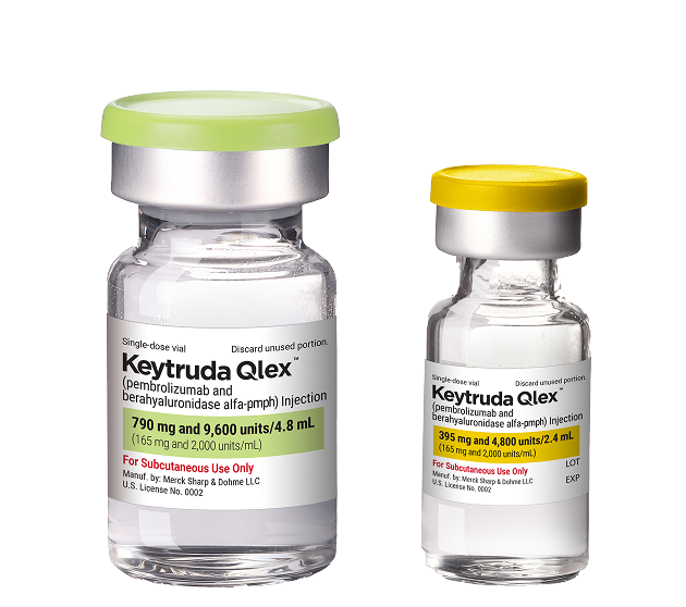Carton of one 395 mg pembrolizumab and 4,800 units berahyaluronidase alfa per 2.4 mL (165 mg/2,000 units per mL), single-dose vial Carton of one 790 mg pembroizumab and 9,600 units berahyaluronidase alfa per 4.8 mL (165 mg/2,000 units per mL), single-dose vial
